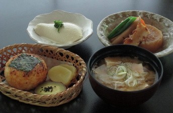 Yuzu Sawa no Chaya: This restaurant nestled in the rich natural surroundings of a mountain village offers local cuisine and relaxation. Enjoy rice balls grilled in yuzu and miso, stewed dishes, dengaku, and other simple, heartwarming dishes. This is the ideal gastronomy tour, where participants can select their favorite produce grown on the spot and have it prepared in their favorite way.